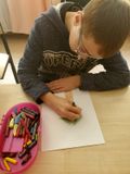 Осень считается самой яркой порой в году. Именно красавице Осени многие поэты и писатели посвящают свои стихи и рассказы, композиторы пишут о ней свои произведения, художники рисуют картины. Маленькие художники, вооружившись красками и цветными карандашами рисовали сегодня пейзажи осеннего леса и осенней непогоды. Рисунки получились хорошие.