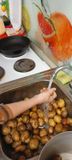 Затем детям был предложен алгоритм приготовления жаренного картофеля… Воспитанники быстро разделились на группы.. Девочки мыли клубни картофеля, а мальчики чистили и нарезали. А когда основная работа была сделана и картошечка аппетитно жарилась в сковороде, все дружно накрыли стол.
